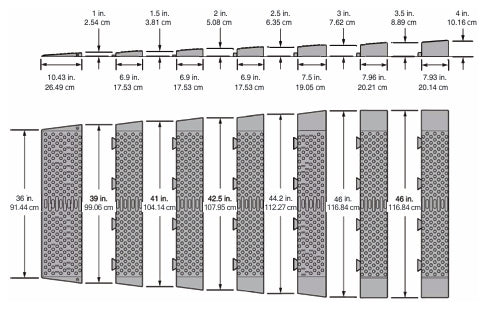 | 6.4cm (2.5") | 79cm (31.13") | 91.4cm (36") | 112.3cm (44.2") | 25kg (55 lbs.) |
