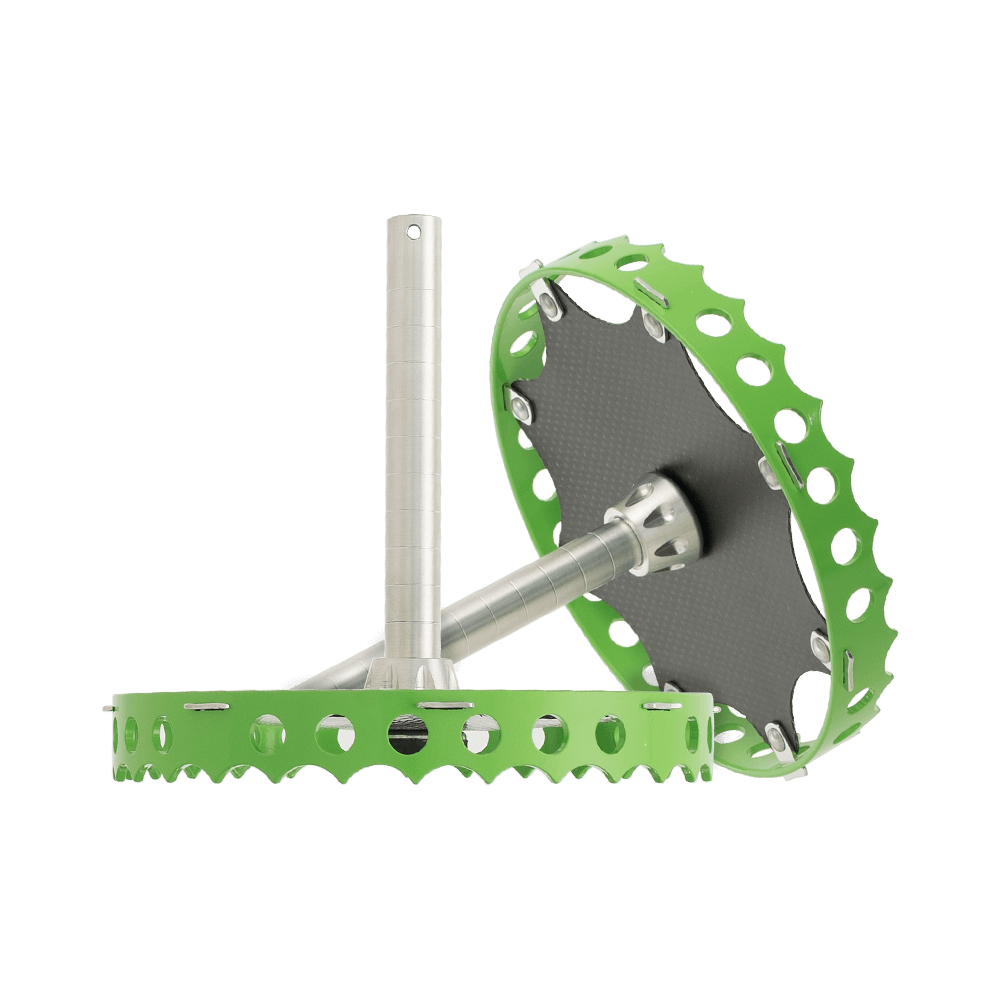 Providing traction and float in fresh snow, these 8″ diameter snowshoes are made from powder coated aircraft aluminum. The decking is made of super-durable PVC coated polyester mesh. SideStix Ice Spindles included.