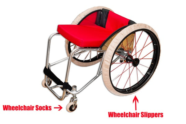 Imagine all of the nasty stuff that your wheelchair rolls around in when you go outside. Now imagine your wheelchair going over your nice clean carpets or your friend's nice clean floors. Not a pretty thought is it? Wheelchairs damage carpets, make tire marks on floors and track dirt and germs to every floor in the house. Yet many wheelchair users think that dirty carpets and damaged floors are just a part of life for wheelchair users. But now there is a solution: RehaDesign Wheelchair Tire Covers: Wheelchair Tire Covers cover your tires and keep dirt and germs from transferring to your clean floors. Wheelchair tire covers prevent the embarrassment of leaving tire tracks when visiting friends and loved ones. They are machine washable and go on the wheelchair in seconds. RehaDesign Wheelchair Tire Covers have a specially designed inner lining so there is no slippage. RehaDesign Wheelchair Tire Covers are used by hospitals, spas and retirement homes around the world.